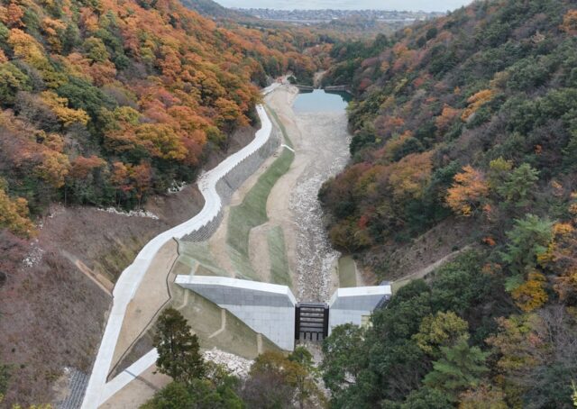 令和5年度滝川補助通常砂防工事 滋賀県大津市 2026.1 河川 発注者滋賀県 設計株式会社田中設計 工事概要堰堤工 1基(提高13.0m 提長58.0m コンクリート3,200m3) 鋼製堰堤工 1基(HBBO+型) 管理用道路工 延長630m コンクリート舗装 2,450m2 法面工 植生工 3,400m2 がご枠620m